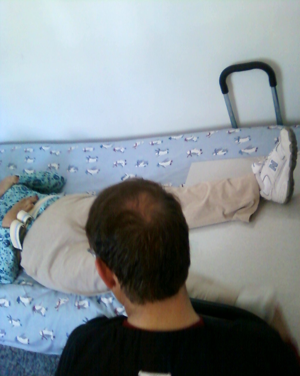 Using the slide board to work the leg.