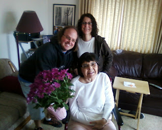 Ceil woke up to the sun shining outside. After breakfast and coffee Linda took Ceil over to the St. Pete Rummage Sale. Upon returning I asked Ceil what she saw and she replied "junk". Shortly after that Kevin and Colleen came to bring Ceil out for an early Mother's Day lunch. Collen will be doing "Walk for the Cure" at the Mall of America tomorrow so an afternoon picnic was planned for today. Colleen and Kevin surprised Mom with mums. Mom loves her mums and we look forward to planting them outside. The three of them had a nice picnic lunch at Wilson Park, which just happened to have an Outdoors Sporting Expo going on. There was plenty to see at Wilson Park today. Shortly we will be heading to Denise's for a mini-birthday party for Linda. Enjoy the pictures. Denise and Bill were so wonderful and gracious this evening as they had a great birthday dinner for Linda. Ceil really enjoyed herself as well. Enjoy the pictures below.
